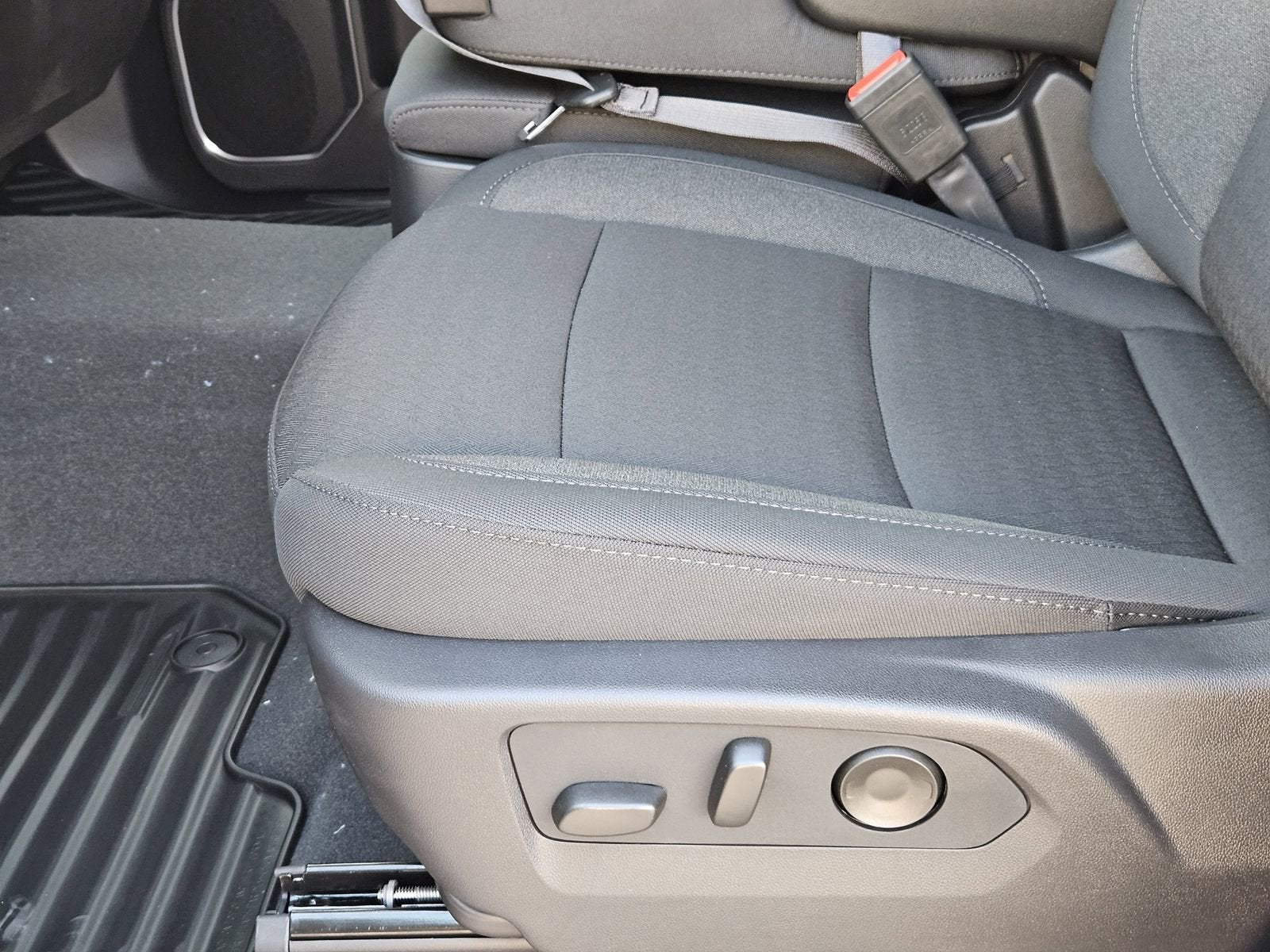Cloth seating, a power driver seat with lumbar support, heated front seats, and a heated steering wheel all make daily driving easier. The split-bench layout and rear fold-up seating add flexibility for passengers or extra storage.