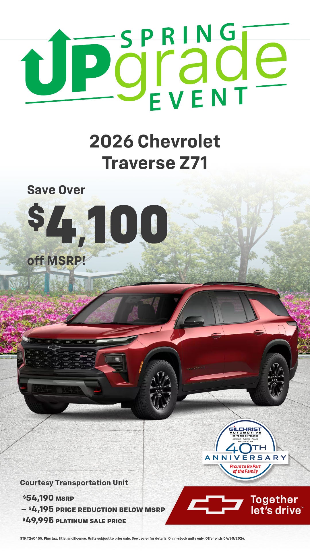 Save Over $4,100 on 2026 Chevrolet Traverse Z71!