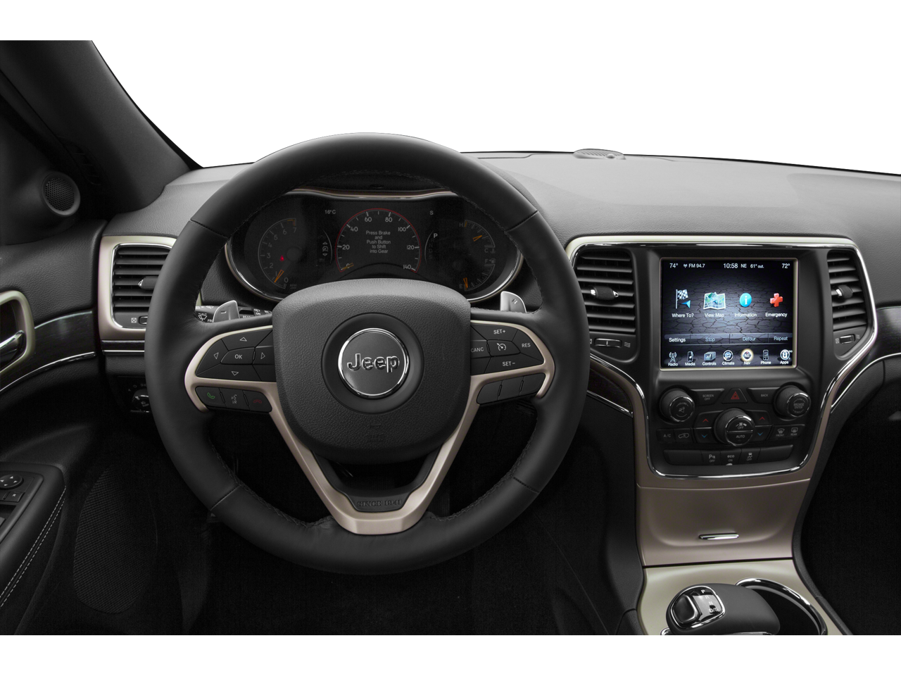This 2015 Jeep Grand Cherokee Limited comes nicely equipped with the following Quick Order Package 23H (DISC), 1-Yr SiriusXM Traffic Service, 1-Yr SIRIUSXM Travel Link Service, 18 x 8.0 Aluminum Polished Wheels, 20 x 8.0 Aluminum Wheels, 3.45 Rear Axle Ratio, 4-Wheel Disc Brakes, 6 Month Trial (Registration Required), 6 Speakers, 8.4 Touchscreen Display, ABS brakes, Air Conditioning, Alloy wheels, AM/FM radio: SiriusXM, Anti-whiplash front head restraints, Audio memory, Auto-dimming door mirrors, Auto-dimming Rear-View mirror, Automatic temperature control, Brake assist, Bumpers: body-color, Compass, Delay-off headlights, Driver door bin, Driver vanity mirror, Dual front impact airbags, Dual front side impact airbags, Eco Suspension I, Electronic Stability Control, Exterior Parking Camera Rear, For Details Visit DriveUconnect.com, Four wheel independent suspension, Front anti-roll bar, Front Bucket Seats, Front Center Armrest w/Storage, Front dual zone A/C, Front fog lights, Front reading lights, Fully automatic headlights, Garage door transmitter, GPS Antenna Input, GPS Navigation, HD Radio, Heated door mirrors, Heated front seats, Heated rear seats, Heated steering wheel, Illuminated entry, Integrated Voice Command w/Bluetooth®, Knee airbag, Leather Shift Knob, Low tire pressure warning, Manufacturer's Statement of Origin, Memory seat, Occupant sensing airbag, Outside temperature display, Overhead airbag, Overhead console, Panic alarm, Passenger door bin, Passenger vanity mirror, Power door mirrors, Power driver seat, Power Liftgate, Power passenger seat, Power steering, Power Sunroof, Power windows, Premium Leather Trimmed Bucket Seats, Radio data system, Radio: Uconnect 5.0, Radio: Uconnect 8.4 NAV, Rear anti-roll bar, Rear Parking Sensors, Rear reading lights, Rear seat center armrest, Rear window defroster, Rear window wiper, Rear-View Auto-Dimming Mirror w/Microphone, Remote keyless entry, Roadside Assistance & 9-1-1 Call, Roof rack: rails only, Security system, SIRIUSXM Satellite Radio, SIRIUSXM Traffic, SiriusXM Travel Link, Speed control, Speed-Sensitive Wipers, Split folding rear seat, Spoiler, Steering wheel mounted audio controls, Tachometer, Telescoping steering wheel, Tilt steering wheel, Traction control, Trip computer, Turn signal indicator mirrors, Uconnect Access, and Variably intermittent wiperS.