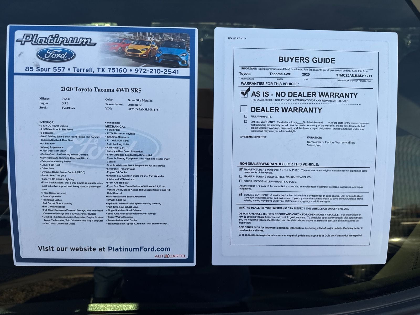 - Vehicle Name: Toyota Tacoma 4WD