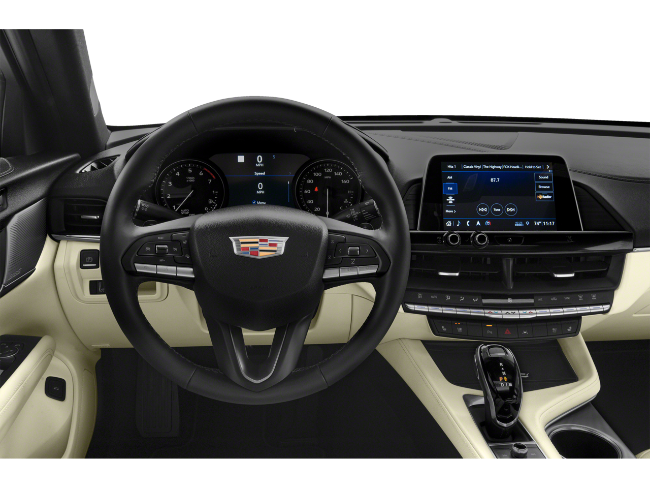 - Cadillac user experience, AM/FM stereo with 8" diagonal HD color information display, 2 USBs, personalized profiles for each driver's settings, Natural Voice Recognition, Phone Integration for Wireless Apple CarPlay/Wireless Android Auto capability for compatible phone, Near Field Communication (NFC) mobile device pairing, Connected Apps and Teen Driver (Upgradeable to (IOT) Cadillac user experience with embedded navigation when (PCM) Sun and Sound Package is ordered.)