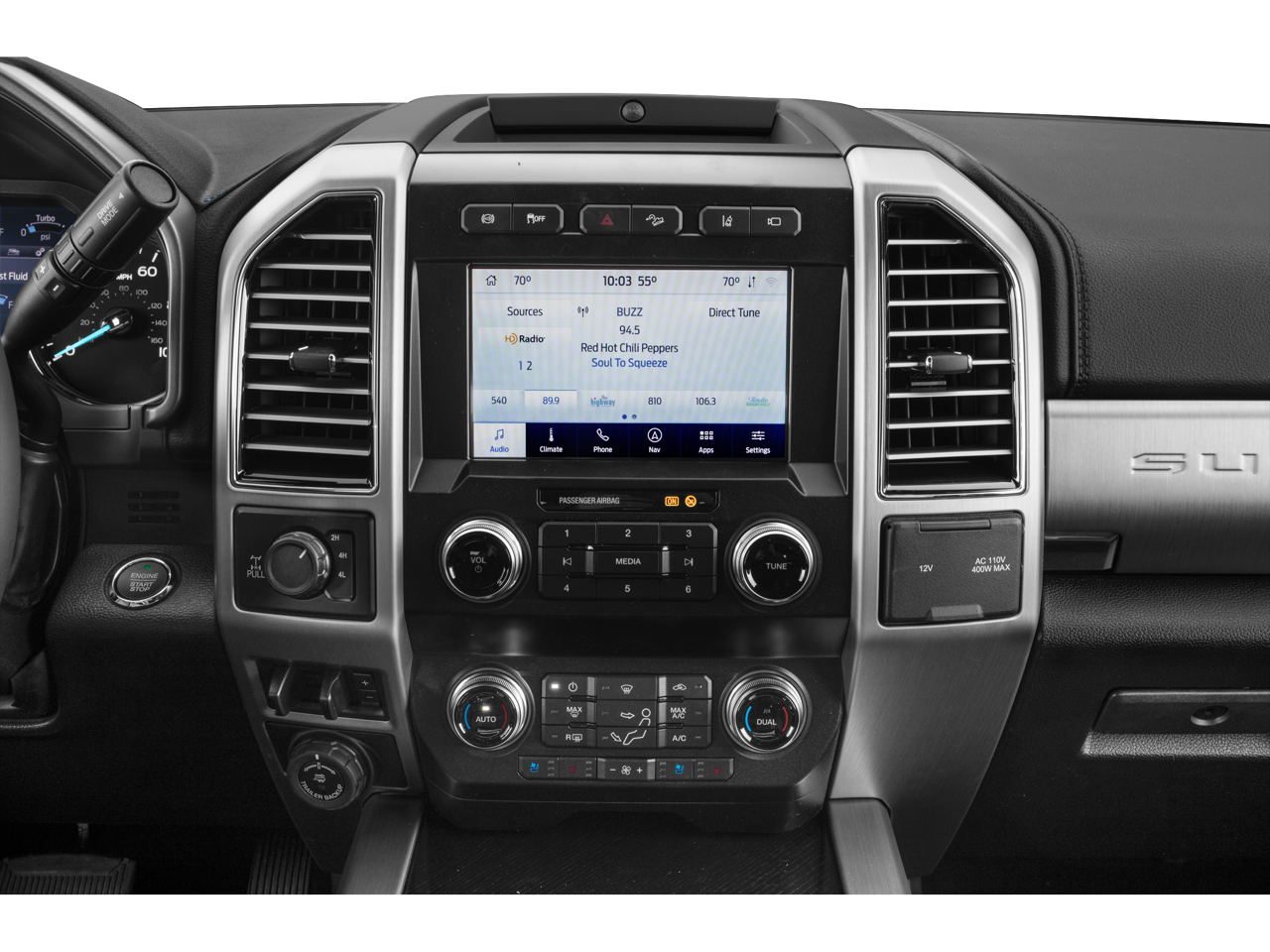 This 2021 Ford F-250SD Platinum comes nicely equipped with the following 5th Wheel/Gooseneck Hitch Prep Package, GVWR: 10,000 lb Payload Package, 10 Speakers, 110V/400W Outlet, 4-Wheel Disc Brakes, ABS brakes, Adjustable pedals, Air Conditioning, Alloy wheels, AM/FM radio: SiriusXM, Auto High-beam Headlights, Auto-dimming Rear-View mirror, Automatic temperature control, Brake assist, Compass, Delay-off headlights, Driver door bin, Driver vanity mirror, Dual front impact airbags, Dual front side impact airbags, Electronic Stability Control, Emergency communication system: SYNC 3 911 Assist, Exterior Parking Camera Rear, Flow-Through Console, Front anti-roll bar, Front Bucket Seats, Front Center Armrest, Front dual zone A/C, Front fog lights, Front License Plate Bracket, Front reading lights, Front Splash Guards/Mud Flaps (Pre-Installed), Fully automatic headlights, Gooseneck Hitch Kit (Pre-Installed), Heated door mirrors, Illuminated entry, Leather steering wheel, LED Roof Clearance Lights, Low tire pressure warning, Outside temperature display, Overhead airbag, Overhead console, Panic alarm, Passenger door bin, Passenger vanity mirror, Power door mirrors, Power driver seat, Power passenger seat, Power steering, Power windows, Radio data system, Radio: B&O System by Bang & Olufsen, Rear Parking Sensors, Rear reading lights, Rear seat center armrest, Rear Splash Guards/Mud Flaps (Pre-Installed), Rear step bumper, Rear window defroster, Remote keyless entry, Security system, SiriusXM Radio, Speed control, Split folding rear seat, Steering wheel mounted audio controls, SYNC 3 Communications & Entertainment System, Tachometer, Telescoping steering wheel, Tilt steering wheel, Tough Bed Spray-In Bedliner, Traction control, Trip computer, Turn signal indicator mirrors, Upfitter Switches (6), Variably intermittent wipers, and Vehicle Safe by Console Vault (Pre-Installed)