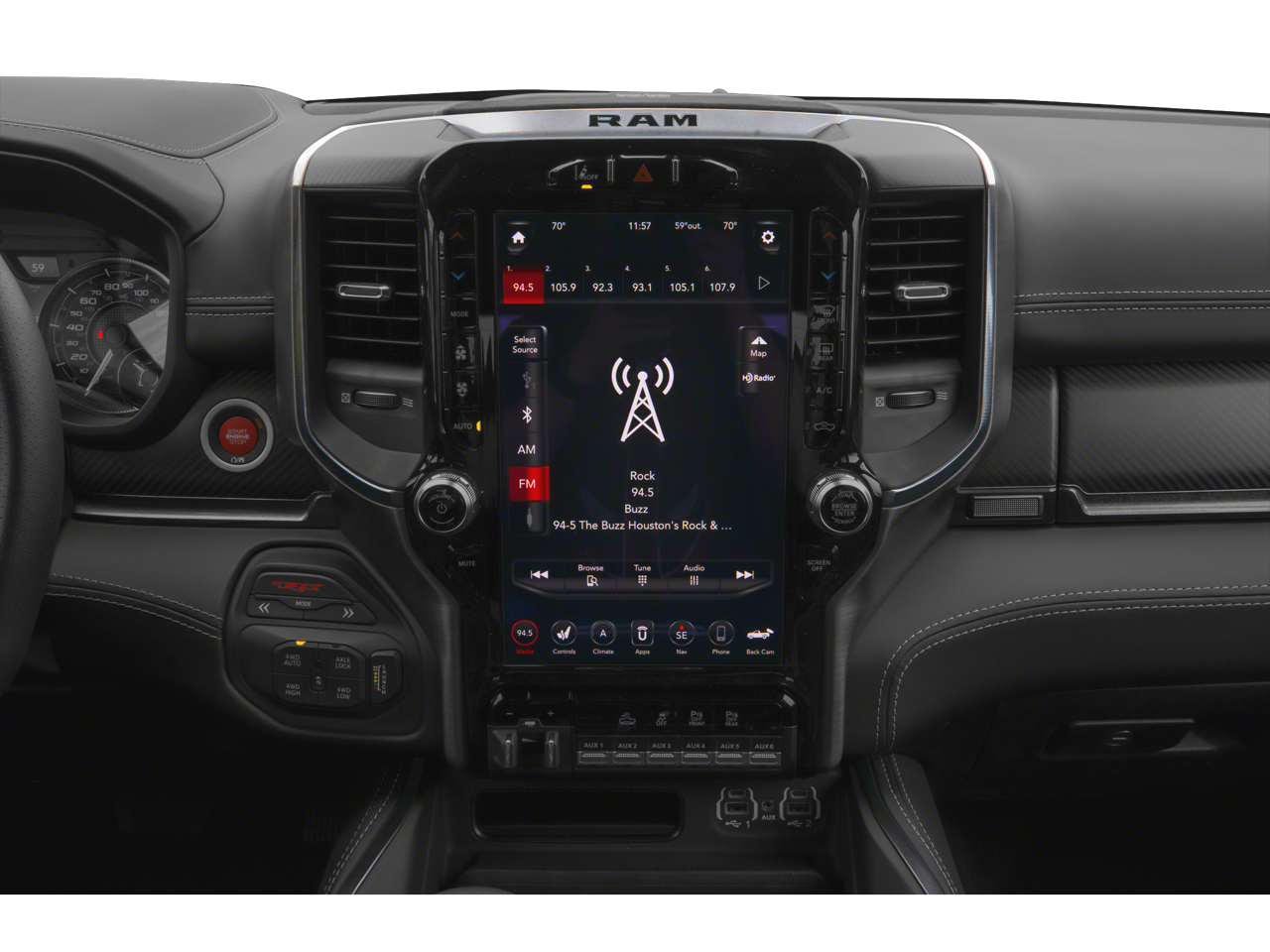 Beyond its impressive capabilities, the TRX also boasts a striking, bold appearance with its Black exterior and unique design cues. Step inside and you'll be surrounded by premium materials, including a leather-wrapped, flat-bottom steering wheel and ventilated front and rear seats.