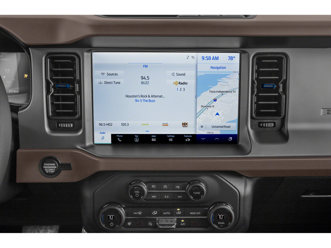 The Bronco Outer Banks comes equipped with a host of premium features that elevate your driving experience. Enjoy the convenience of the connected navigation system, the versatility of the roof rails and crossbars, and the added functionality of the auxiliary switches. The keyless entry keypad provides easy access, while the front and rear floor liners keep your Bronco's interior looking its best.