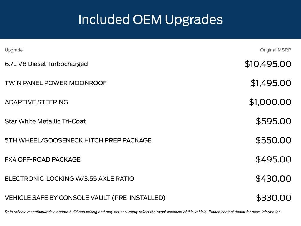• 6.7L V8 Diesel Turbocharged (Power Stroke) engine with 10-speed automatic transmission and 4WD