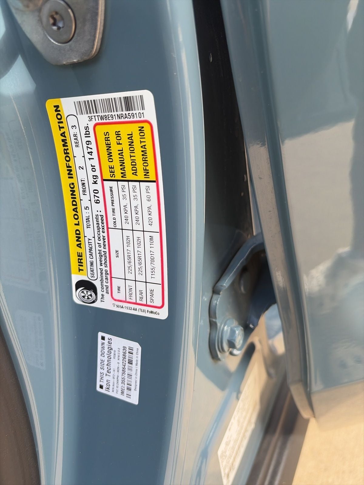 - Spare Tire Order Code: 999