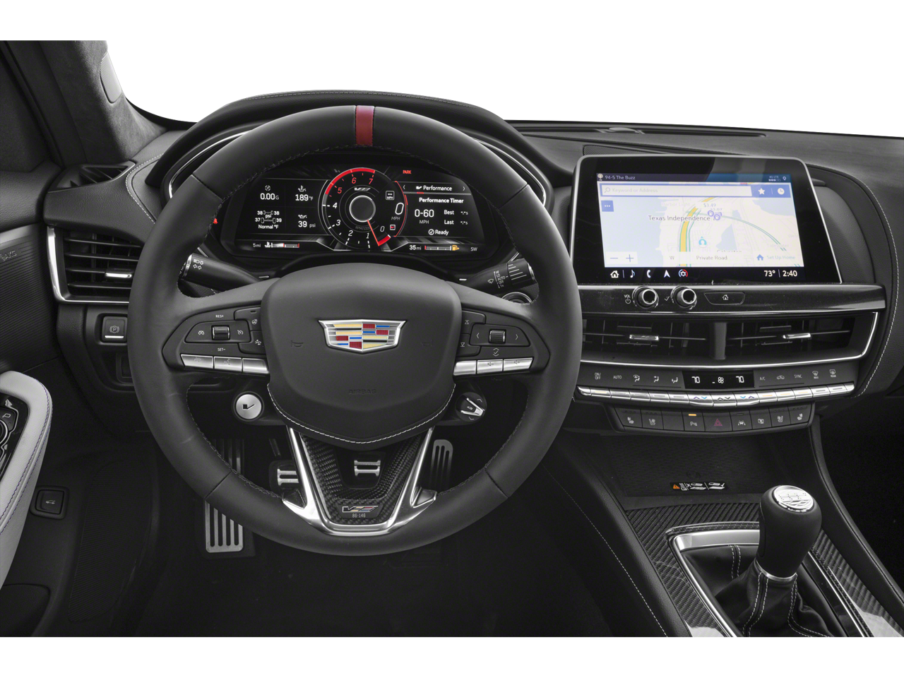 The cabin blends performance design with Cadillac luxury, creating a cockpit that feels both premium and purpose-built.