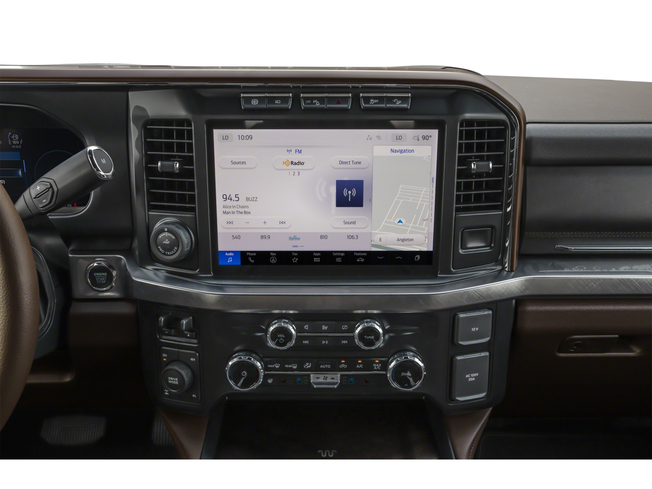 - SYNC 4 w/Enhanced Voice Recognition -inc: 12" LCD capacitive touchscreen w/swipe capability, information on demand panel, wireless phone connection, cloud connected, AppLink w/app catalog, 911 Assist, Apple CarPlay and Android Auto compatibility, digital owner's manual, conversational voice command recognition and connected navigation w/complimentary 1-year trial for eligible vehicles that begins on the new vehicle warranty start date, Customers must unlock the navigation service trial by activating the eligible vehicle w/a FordPass member account, If not subscribed by the end of the complimentary period, the connected navigation service will terminate, and the system will revert to embedded offline navigation, Navigation services require SYNC4 and Ford Pass Connect (optional on select vehicles), complimentary connect service and the FordPass app (see FordPass terms for details), Connected service and features depend on compatible AT&T network availability, Evolving technology/cellular networks/vehicle capability may limit functionality and prevent operation of connected features, FordPass app, compatible w/select smartphone platforms, is available via a download, Message and data rates may apply